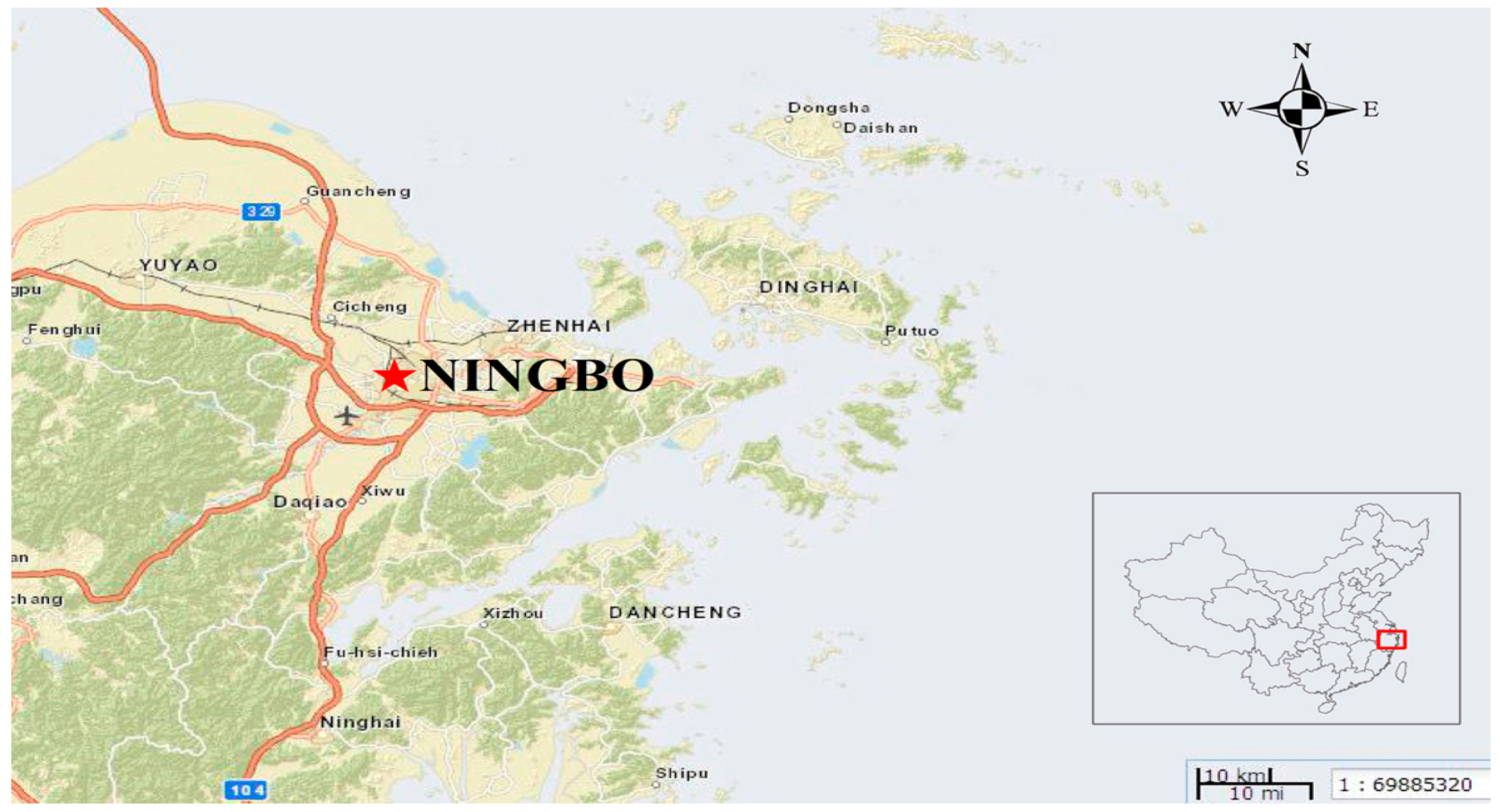 Map of Ningbo City, Zhejiang Province, China ([17]).
