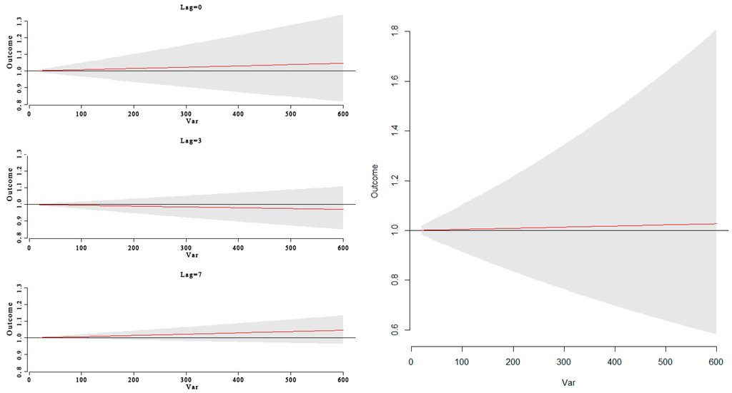 - Gasparrini, A.; Armstrong, B. Distributed Lag Non-Linear Models in R: The Package DLNM. Available online: http://cran.r-project.org/web/packages/dlnm/vignettes/dlnmOver-view.pdf (accessed on 13 June 2012).