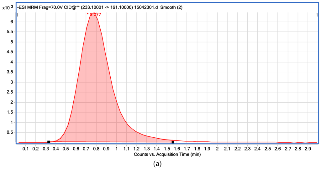 34. Shida, S.S.; Nemoto, S.; Matsuda, R. Simultaneous determination of acidic pesticides in vegetables and fruits by liquid chromatography–tandem mass spectrometry. J. Environ. Sci. Health B 2015, 50, 151–162. [Google Scholar] [CrossRef] [PubMed]