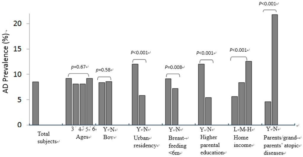 | AD, asthma/rhinitis and family atopic history (prevalence) | |||