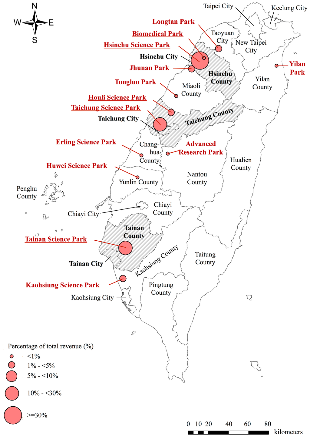 - Ministry of Science and Technology, Taiwan. Science Parks: Common Statistics Form. Available online: https://ap0512.most.gov.tw/WAS2/English/AsScienceParkE.aspx (accessed on 28 February 2016).