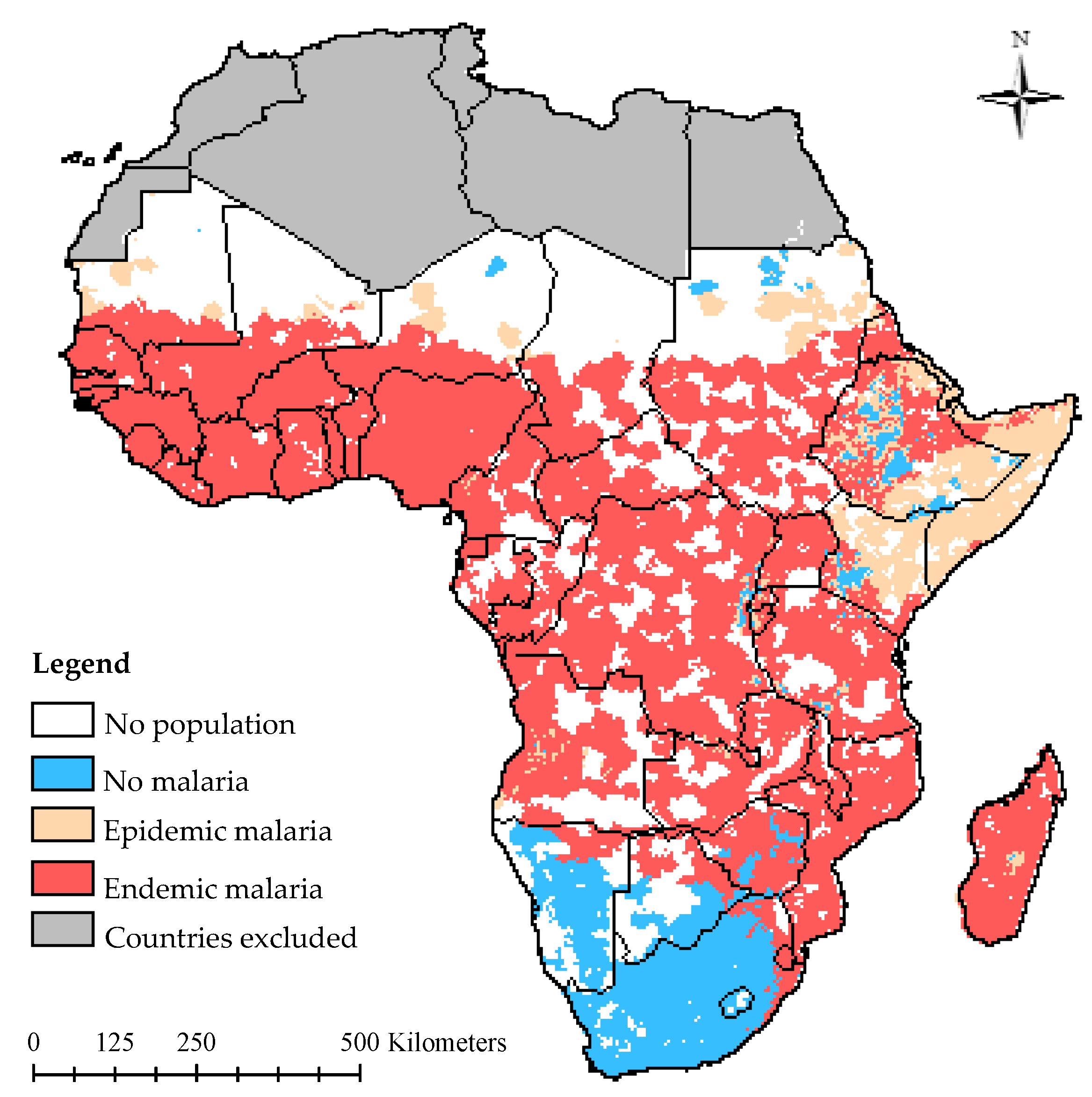 - Omumbo, J.A.; Hay, S.I.; Snow, R.W.; Tatem, A.J.; Rogers, D.J. Modelling malaria risk in East Africa at high-spatial resolution. Trop. Med. Int. Health 2005, 10, 557–566. [Google Scholar] [CrossRef] [PubMed]