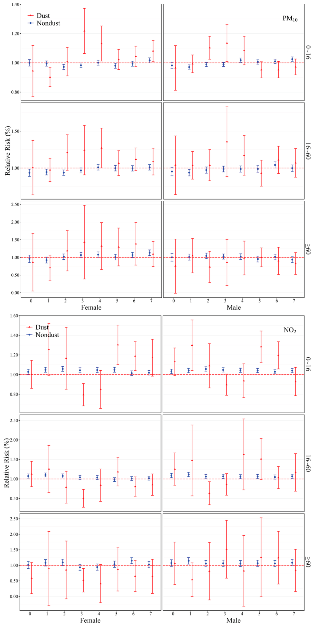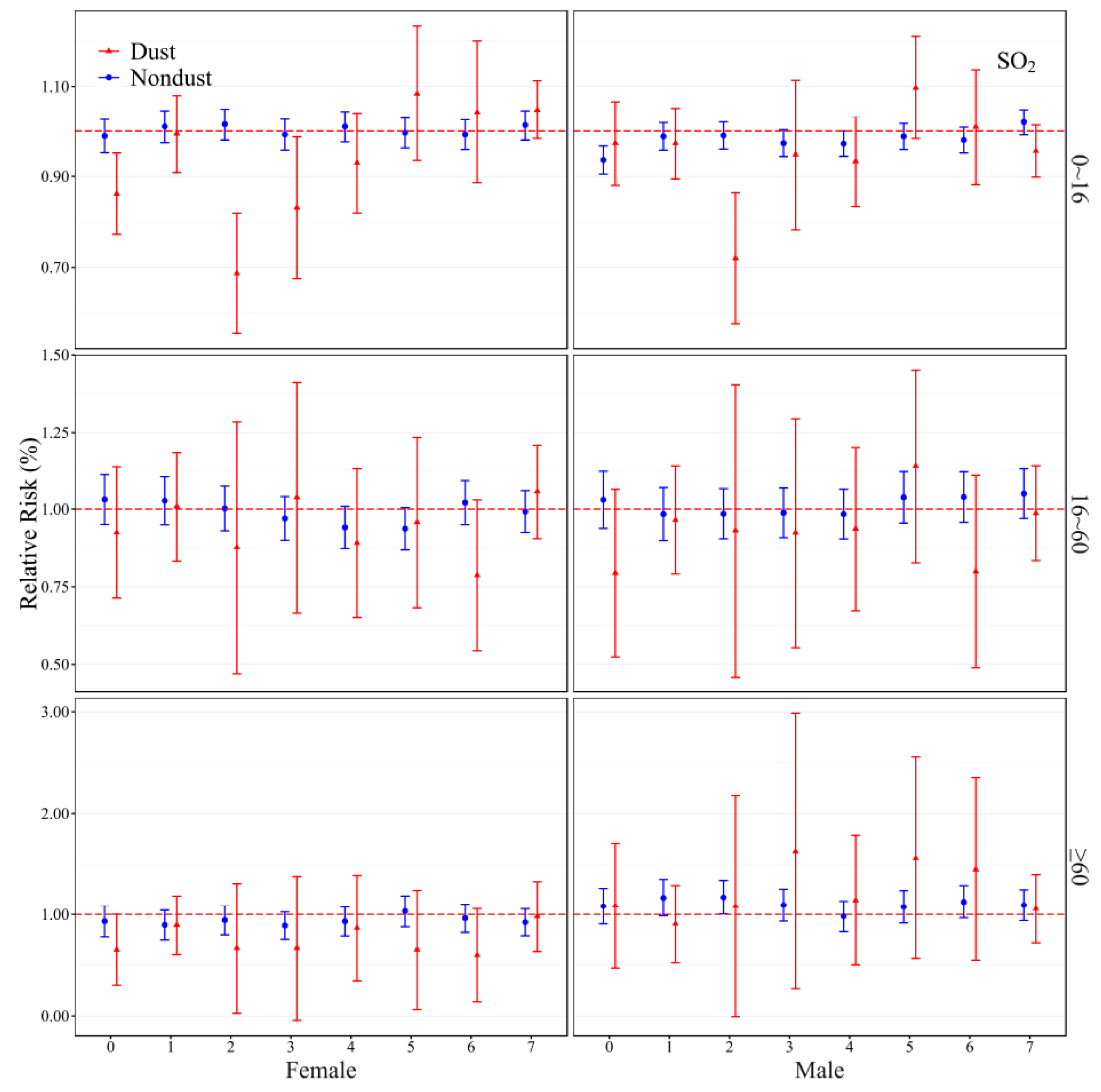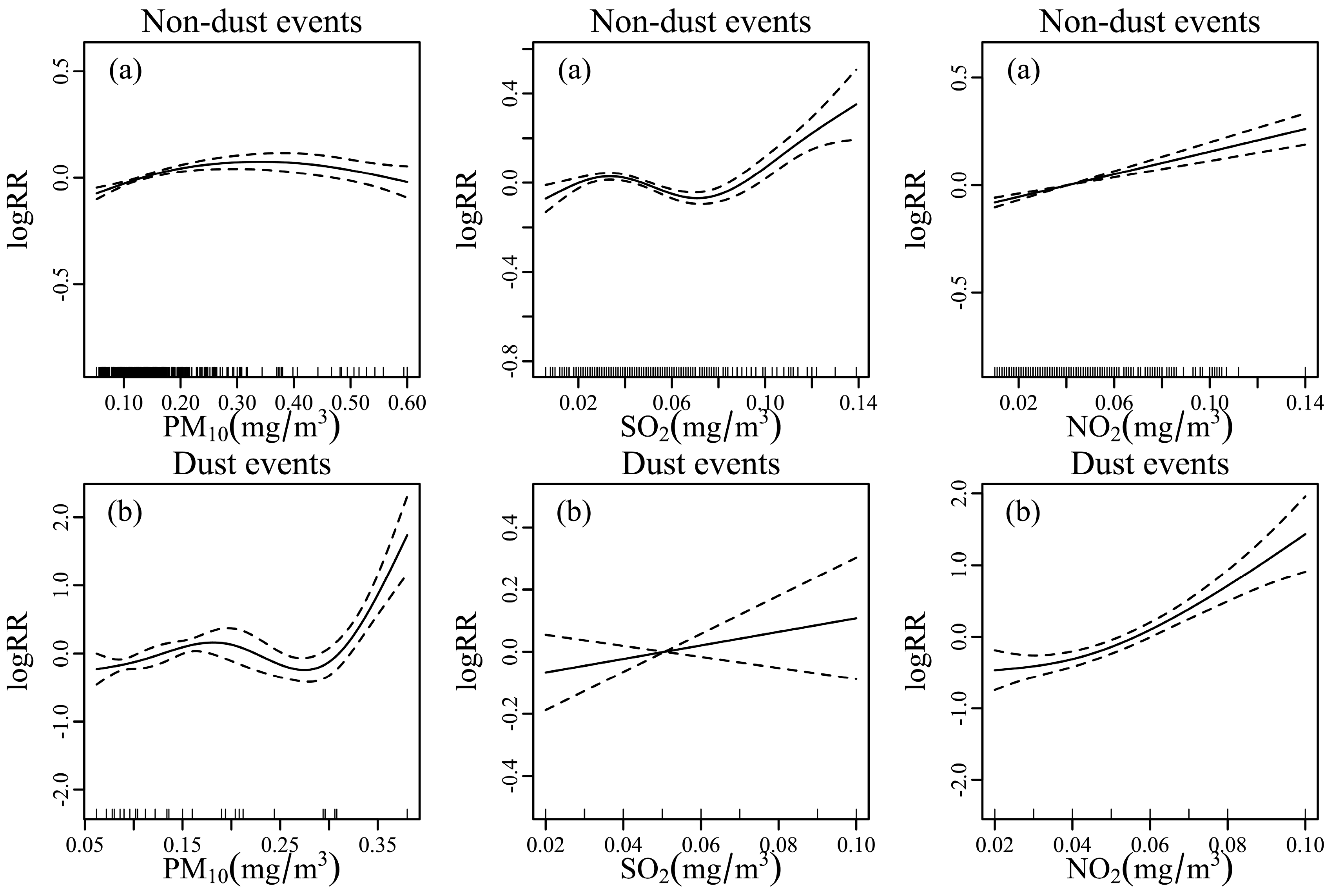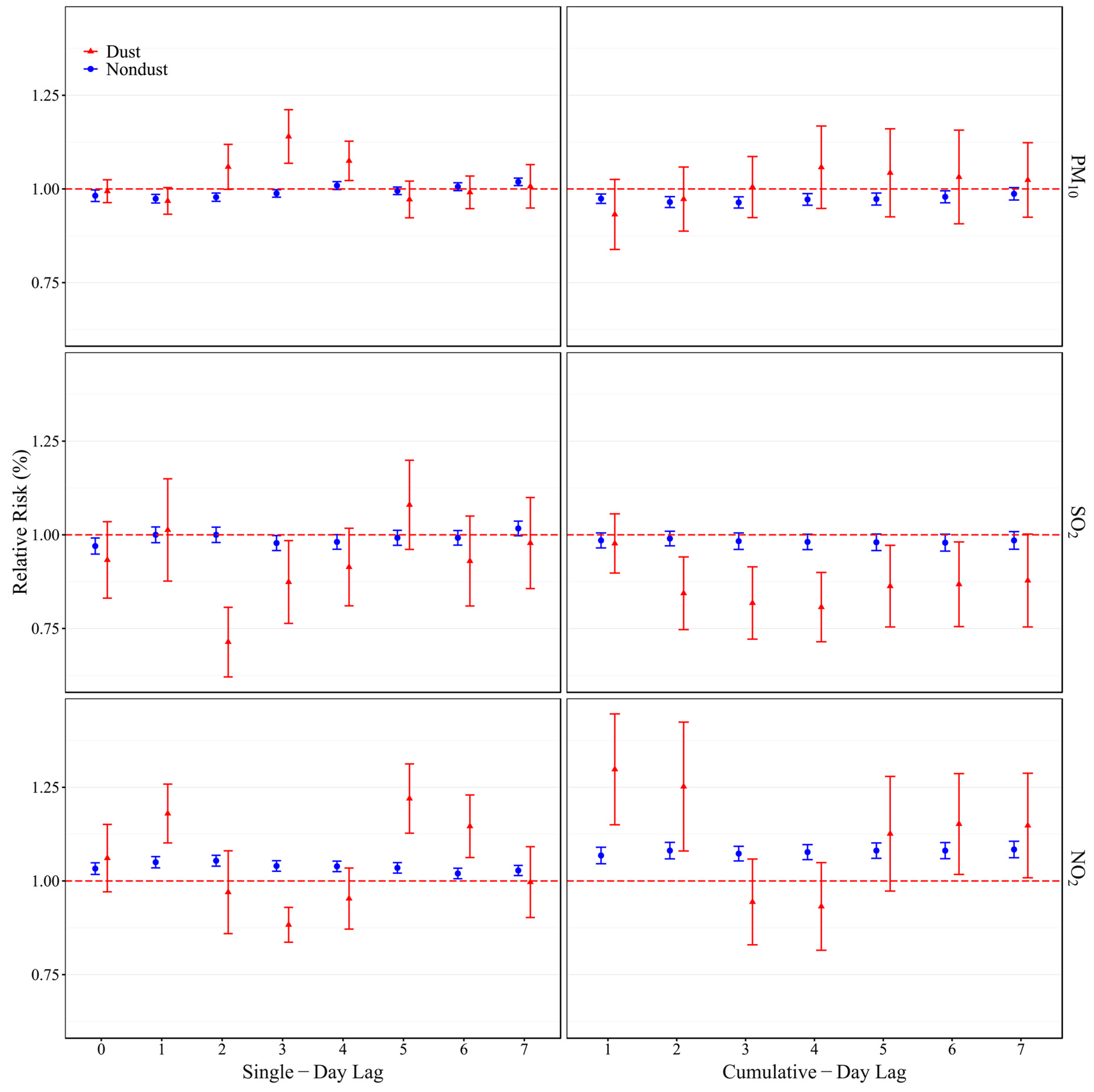| +SO2+NO2 | 0.966 (0.95–0.98) | <0.01 | +PM10+NO2 | 0.789 (0.70–0.90) | <0.01 | +PM10+SO2 | 1.068 (1.05–1.08) | <0.01 |