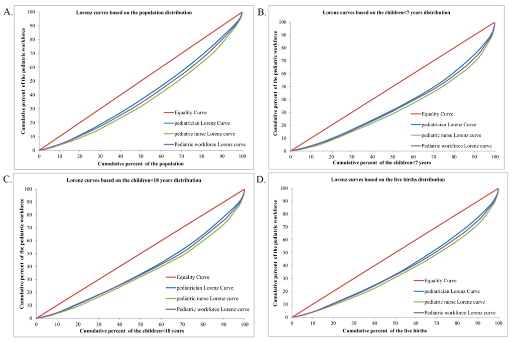 This controversy may be the result of the uneven distribution of the health workforce within the country, however, there is limited evidence to support this proposition, especially for the workforce in the paediatric department where no regular national or local health workforce census is being conducted [19]. To fill this gap of knowledge, we analysed the inequality of the paediatric workforce (including paediatricians and paediatric nurses) distribution in China in this study by using the national investigation of maternal and child health human resource in 2010 [9,11].