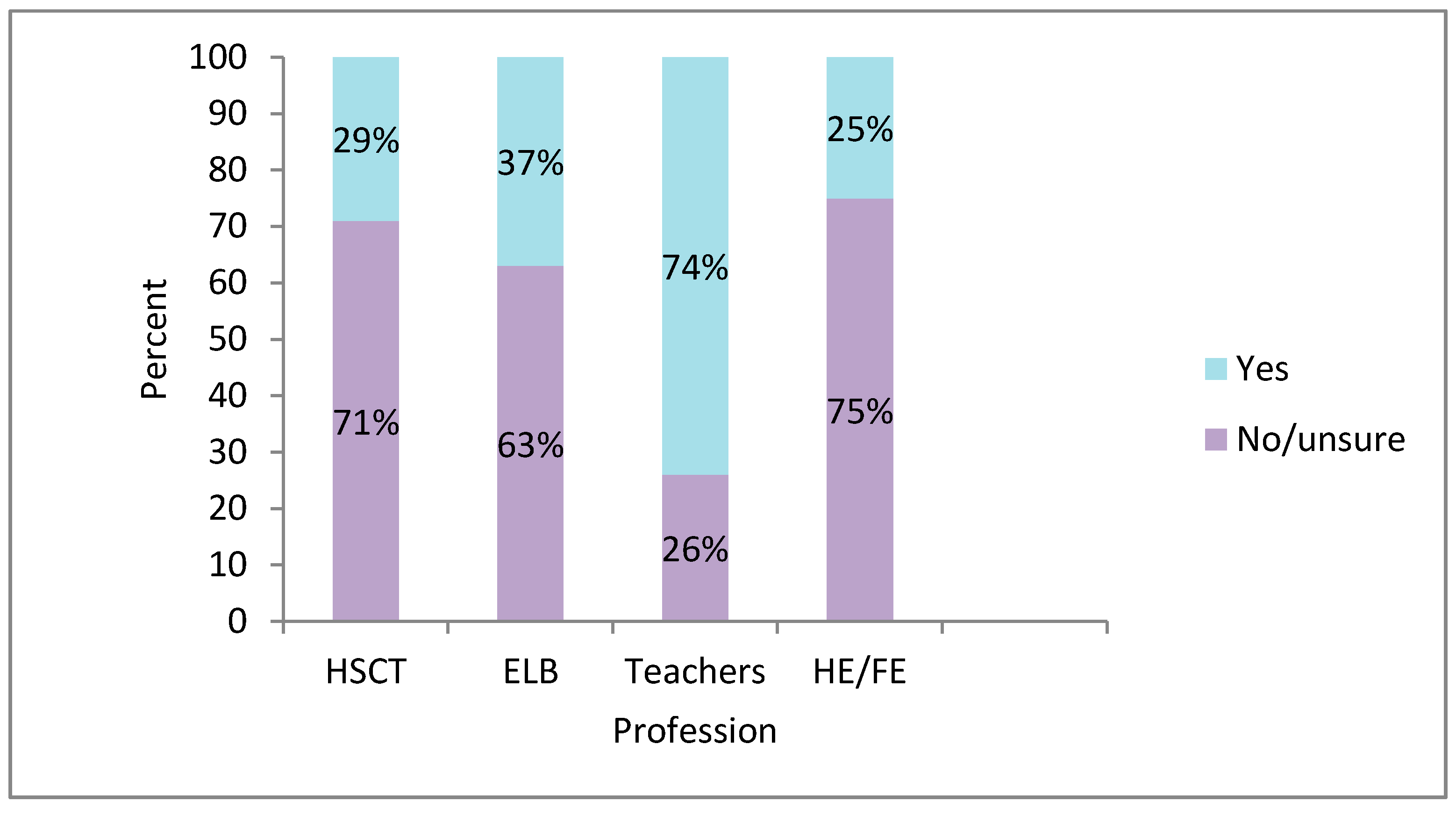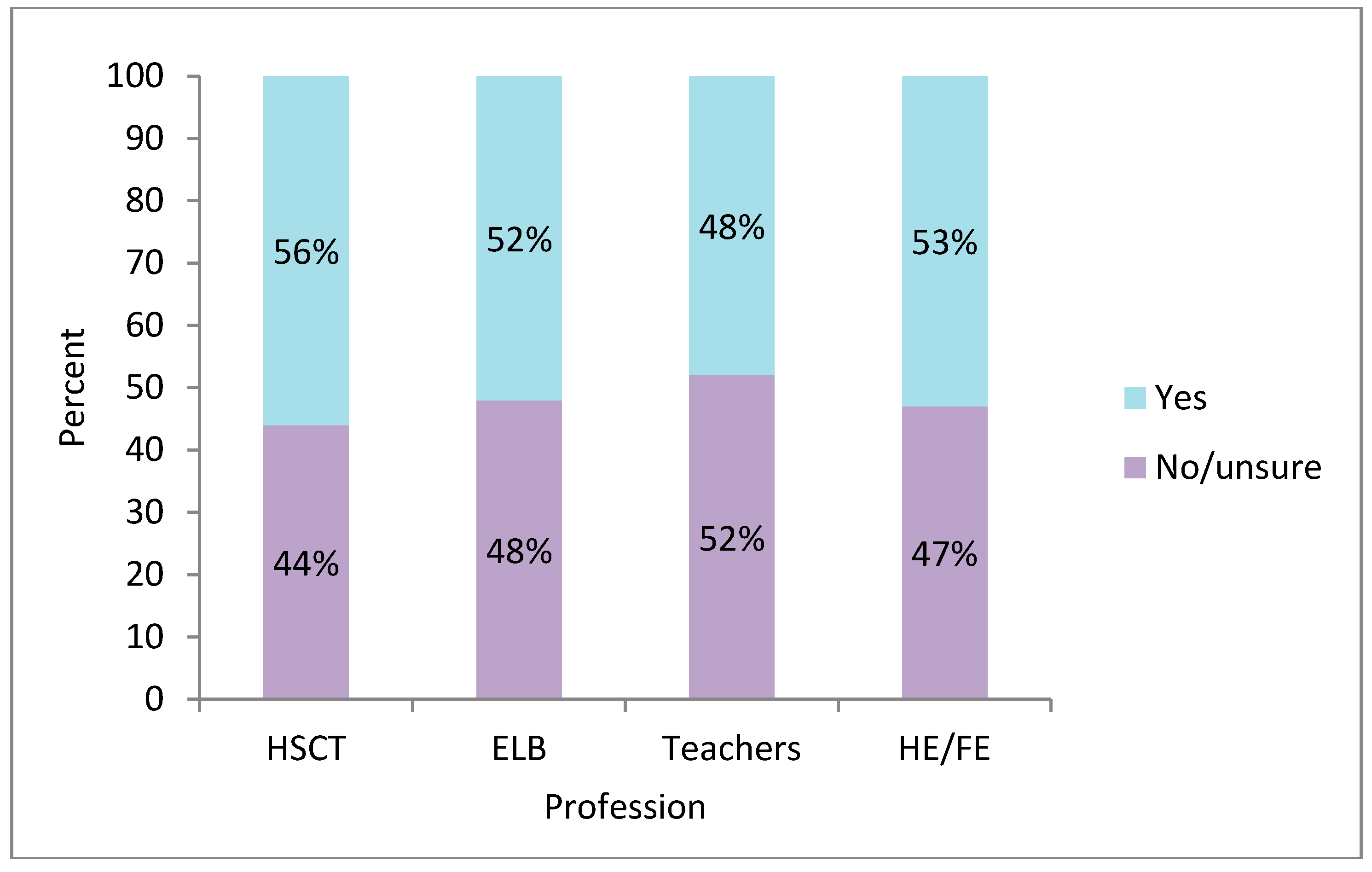 ‘Better training for staff working in mental health services on working with people with autism. This is important as Asperger’s Syndrome now falls within mental health services, whereas previously this came under learning disability services.’(HSC professional)