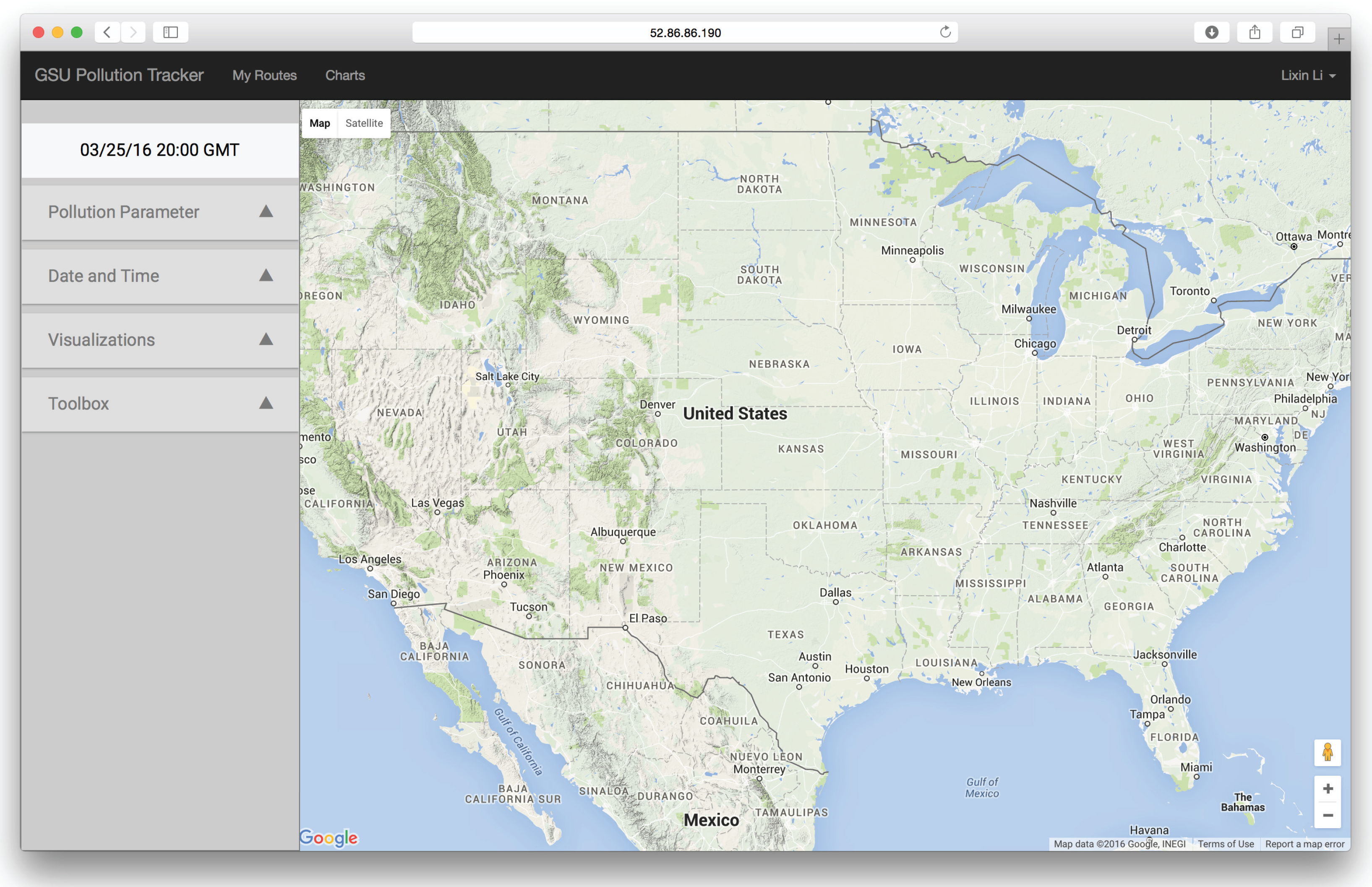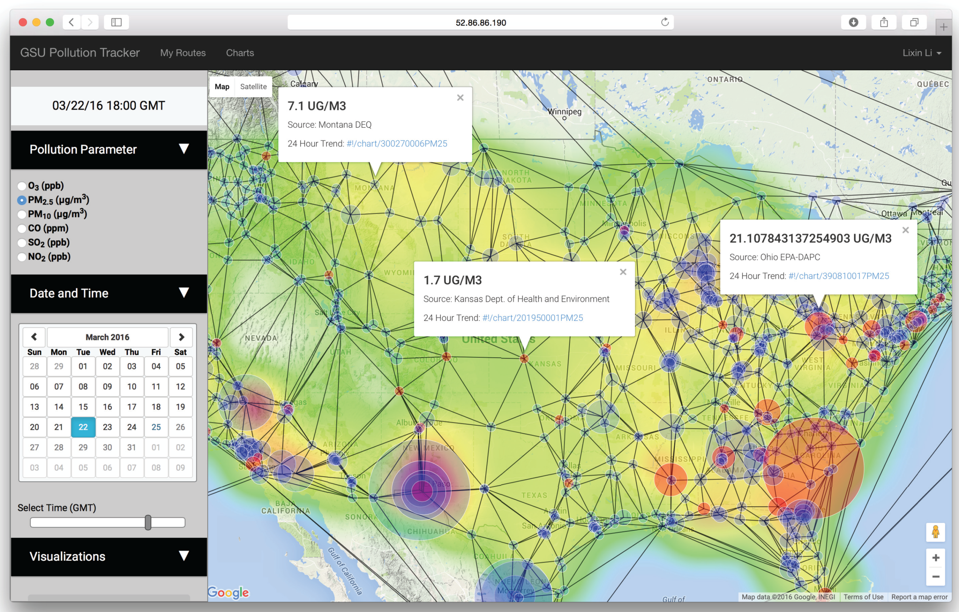- A Real-Time Web Application to Interpolate and Visualize Spatiotemporal Variation of Ambient Air Pollution Across the Contiguous U.S. Available online: http://52.86.86.190:3000 (accessed on 26 March 2016).