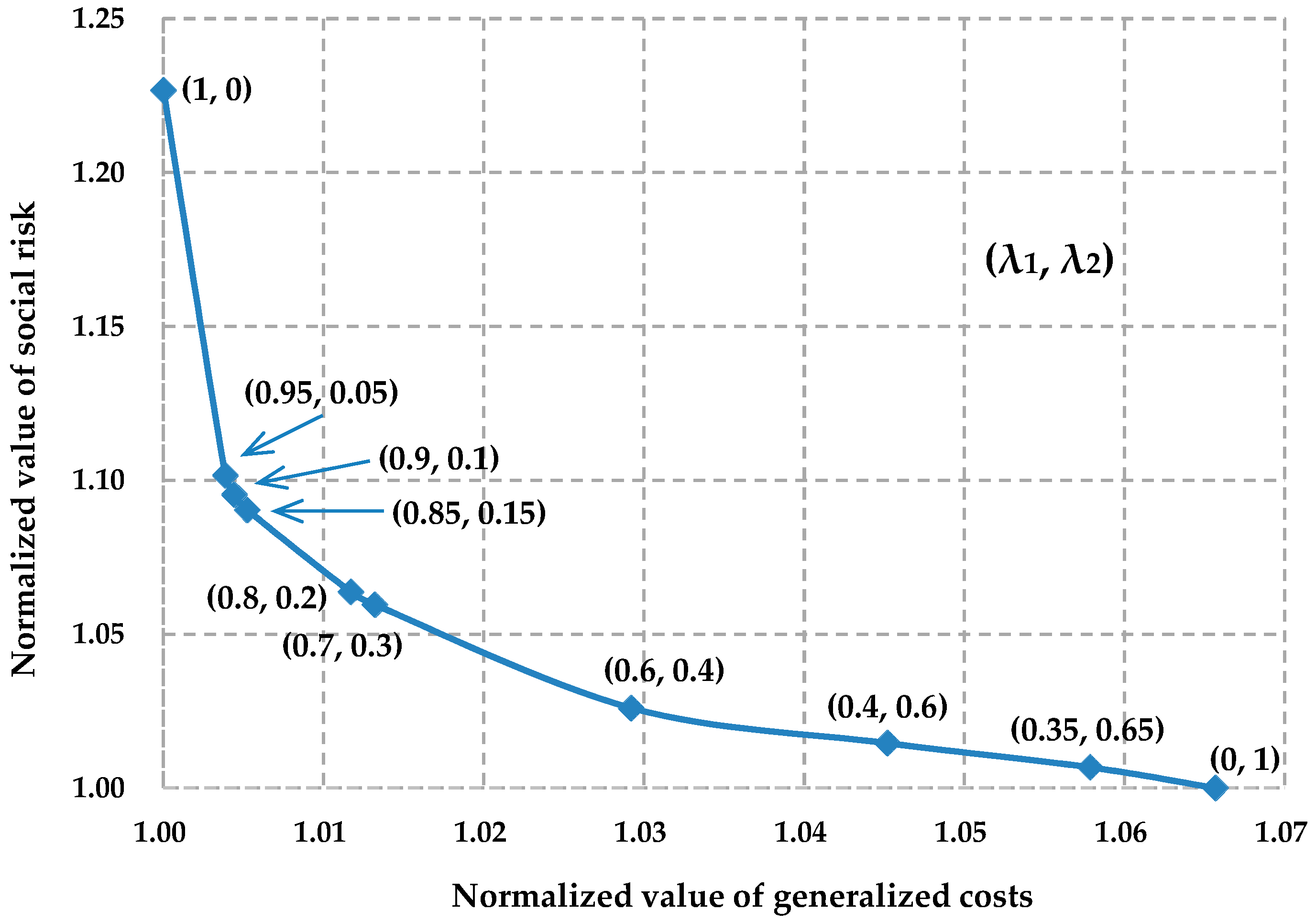 - Bi-objective optimization, including minimizing the total generalized costs of transporting the multiple hazardous materials and the social risk along the planned routes.