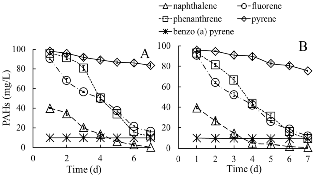 2.3.3. Capacities of Degrading a Mixture of PAHs