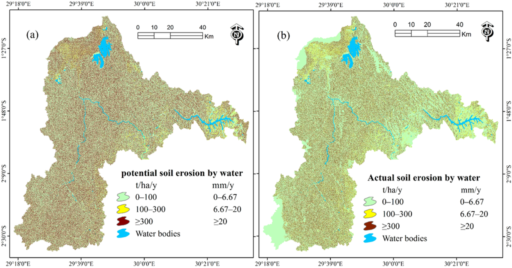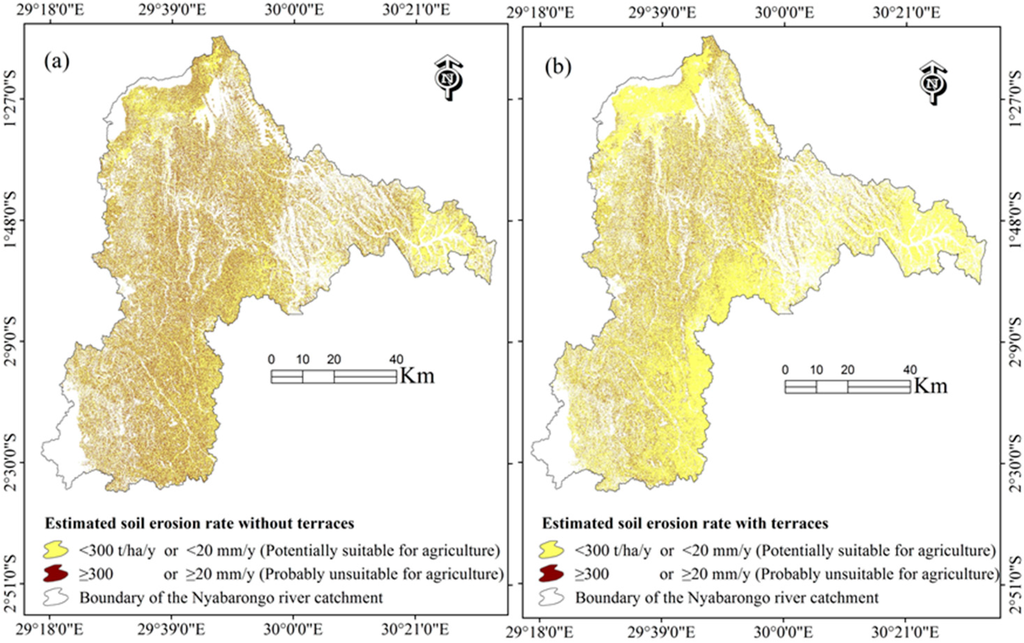 Estimated potential soil erosion rates in the entire Nyabarongo River Catchment excluding water bodies (Figure 4a).