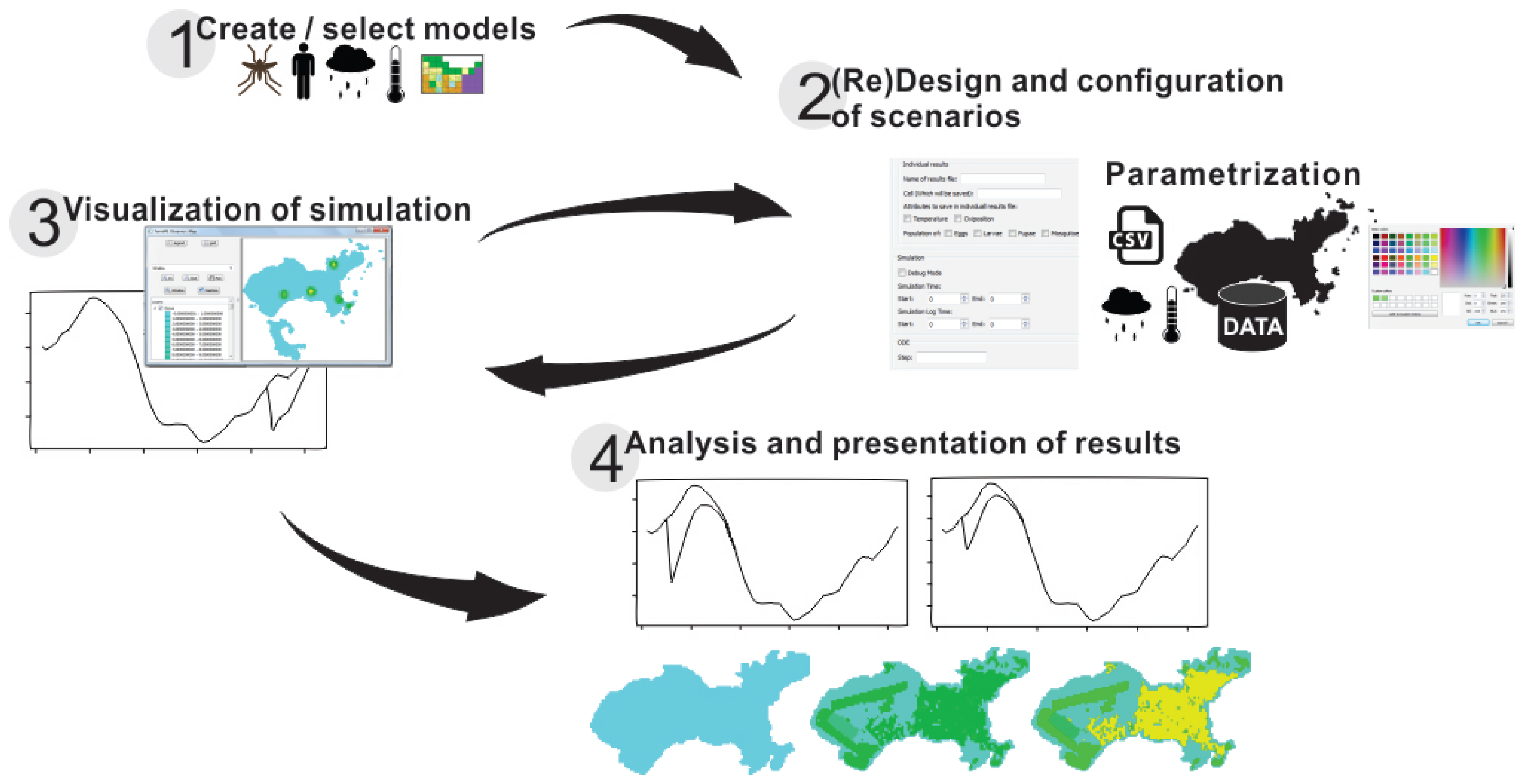 Despite the success of mathematical-computational models in explaining the spatiotemporal dynamics of vector ecology and dengue transmission, it is still necessary to promote further studies and encourage their use to support planning and decision making. Models should be used in the preliminary stages of a study, during the conceptual and design phases. The proper use of these models requires understanding model assumptions. However, such use should not require extensive experience in programming techniques or in model development. Currently, fast model reuse is still a challenge.