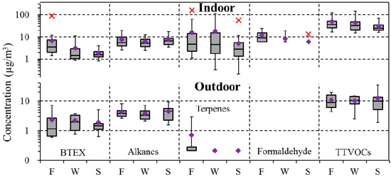 - Shendell, D.G.; Winer, A.M.; Stock, T.H.; Zhang, L.; Zhang, J.F.; Maberti, S.; Colome, S.D. Air concentrations of vocs in portable and traditional classrooms: Results of a pilot study in Los Angeles county. J. Expos. Anal. Environ. Epidemiol. 2004, 14, 44–59. [Google Scholar] [CrossRef] [PubMed]