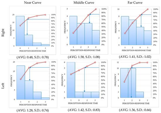 However, different scenarios would have diverse impacts on drivers’ perception-response times. A comparative analysis was done to reveal drivers’ perception-response times on the six kinds of curves. Figure 4 shows the histogram and cumulative frequency curve [24,25,26] of the tested curves.