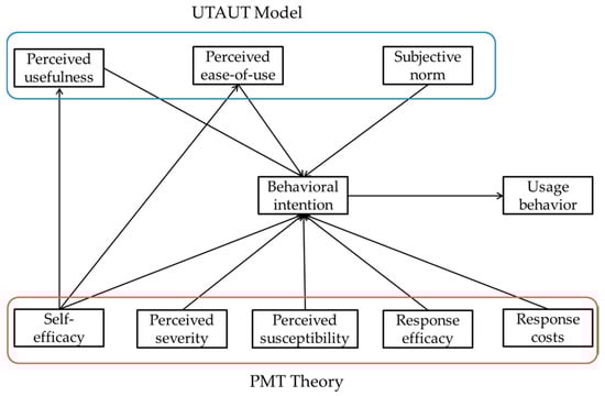 Research model. UTAUT: Theory Unified Theory of Acceptance and Use of Technology; PMT: Protection Motivation (UTAUT).