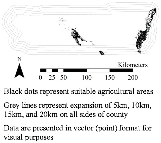 Conrad, Z.; Peters, C.J.; Chui, K.; Jahns, L.; Griffin, T.S. Agricultural Capacity to Increase the Production of Select Fruits and Vegetables in the US: A Geospatial Modeling Analysis. Int. J. Environ. Res. Public Health 2017, 14, 1106. https://doi.org/10.3390/ijerph14101106