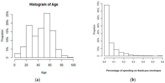 Distribution of patients towards (a) age and (b) the proportion of thank-you money in total treatment fee.