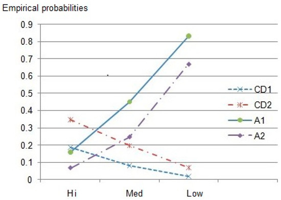 The same methods were applied to the other conditional probabilities, shown in Table 3.