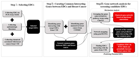 Jeong, H.; Kim, J.; Kim, Y. Identification of Linkages between EDCs in Personal Care Products and Breast Cancer through Data Integration Combined with Gene Network Analysis. Int. J. Environ. Res. Public Health 2017, 14, 1158. https://doi.org/10.3390/ijerph14101158