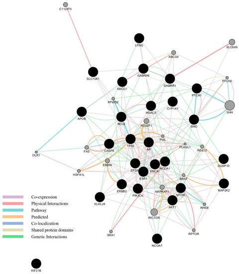 - Montojo, J.; Zuberi, K.; Rodriguez, H.; Kazi, F.; Wright, G.; Donaldson, S.L.; Morris, Q.; Bader, G.D. Genemania cytoscape plugin: Fast gene function predictions on the desktop. Bioinformatics 2010, 26, 2927–2928. [Google Scholar] [CrossRef] [PubMed]
