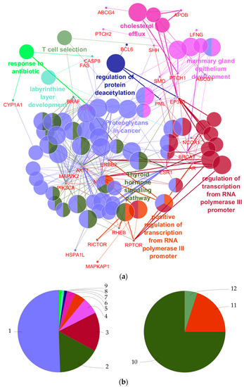 - Bindea, G.; Mlecnik, B.; Hackl, H.; Charoentong, P.; Tosolini, M.; Kirilovsky, A.; Fridman, W.H.; Pages, F.; Trajanoski, Z.; Galon, J. Cluego: A cytoscape plug-in to decipher functionally grouped gene ontology and pathway annotation networks. Bioinformatics 2009, 25, 1091–1093. [Google Scholar] [CrossRef] [PubMed]