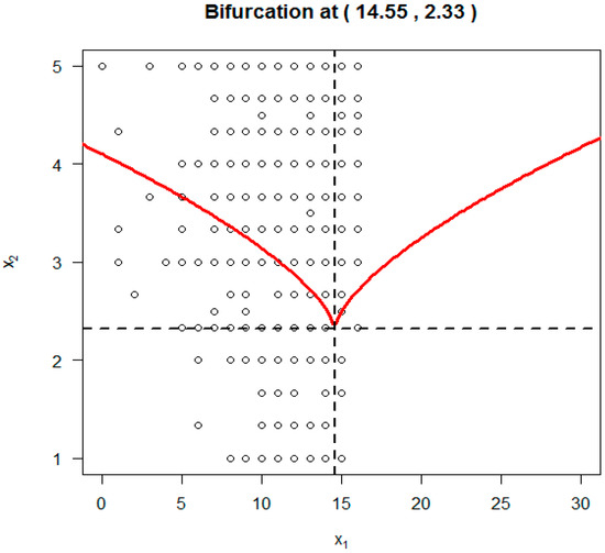 All of the p independent variables are used to composite both and . Any x with the model coefficient significantly different from zero in Equation (8) is used as the evidence supporting its role as an asymmetrical factor. Likewise, any x with a significant model coefficient in Equation (9) will indicate its function as a bifurcation factor. If the model coefficients of a variable x in both Equations (8) and (9) are significant, this variable possesses both asymmetry and bifurcation functions.
