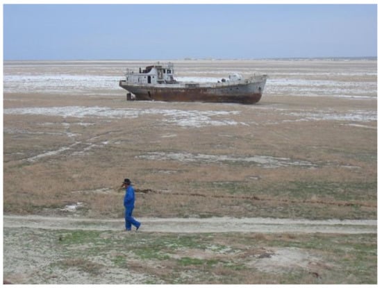 - Staecker. Orphaned Ship in Former Aral Sea, near Aral, Kazakhstan. 2003. Available online: commons.wikimedia.org/wiki/File:Aralship2.jpg (accessed on 1 November 2017).