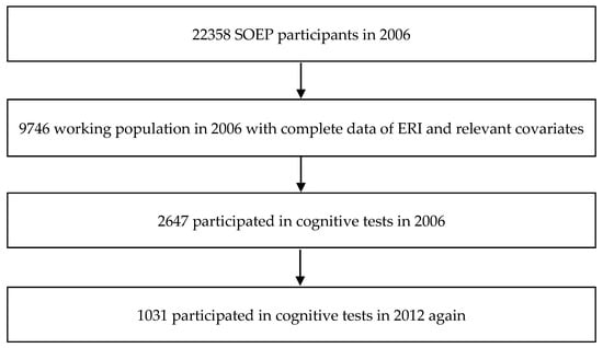 We used data from two waves in 2006 and in 2012. In 2006, the GSOEP included a total of 22,358 participants. Complete information on psychosocial work characteristics including the effort–reward imbalance model and other relevant covariates (see below) was available for 9746 employed participants. Given that cognitive function is assumed to be modifiable throughout adulthood, we did not restrict the age range within the employed population.