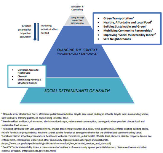 - Frieden, T.R. A Framework for Public Health Action: The Health Impact Pyramid. Am. J. Public Health 2010, 100, 590–595. [Google Scholar] [CrossRef] [PubMed]