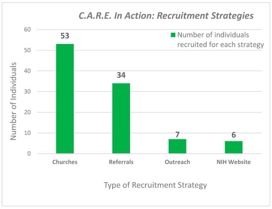 C.A.R.E. Recruitment Strategies. C.A.R.E. recruitment strategies included capitalizing on church partnerships, encouraging referrals and outreach, and posting on the NIH website.