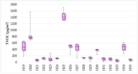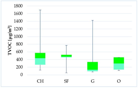 - Mølhave, L.; Nielsen, G.D. Interpretation and limitations of the concept “Total volatile organic compounds” (TVOC) as an indicator of human responses to exposures of volatile organic compounds (VOC) in indoor air. Indoor Air 1992, 2, 65–77. [Google Scholar] [CrossRef]