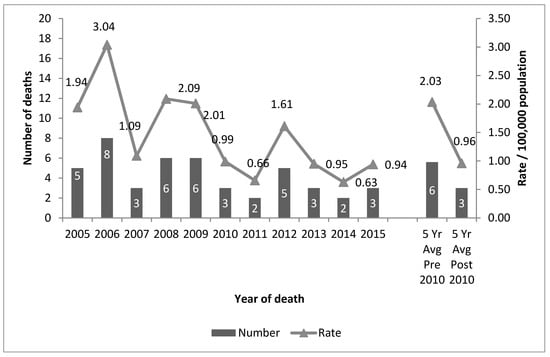 | Total | Before Implementation (2005–2009) | Implementation Year (2010) | After Implementation (2011–2015) | Degrees of Freedom, X2 Analysis Comparing before and after Implementation (p-Value) | |||||