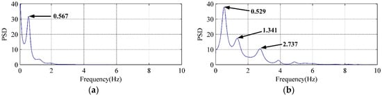 Comparisons of the PSD curves of LFN observed at T9: (a) Condition 2; (b) Condition 6.
