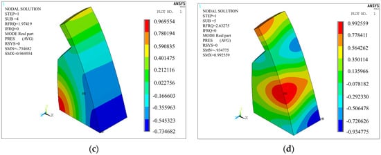 Cavity acoustic modal vibration mode of Condition 6: (a) Second order; (b) Third order; (c) Fourth order; (d) Fifth order.