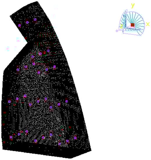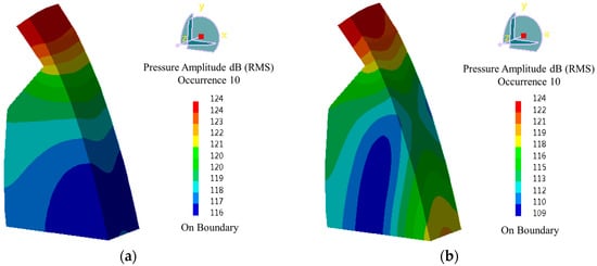 Furthermore, the acoustic direct BEM can be used to calculate the acoustic field distribution in the cavity []. The velocity boundary is chosen as the acoustic boundary condition of the cavity. On the velocity boundary , the solution of Equation (6) should satisfy: