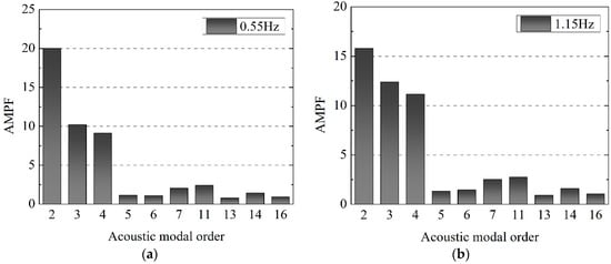 where and is the i-th order acoustic modal shape of the cavity; and is the acoustic modal participation factor (AMPF) of , which represents the contribution degrees from every order acoustic mode to the acoustic response in the cavity. The AMPF can be calculated by the linear superposition theory or residue method.