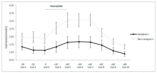 Previous studies in the field have not reported significant differences in Csal levels when comparing elderly caregivers of people with dementia and non-caregivers [