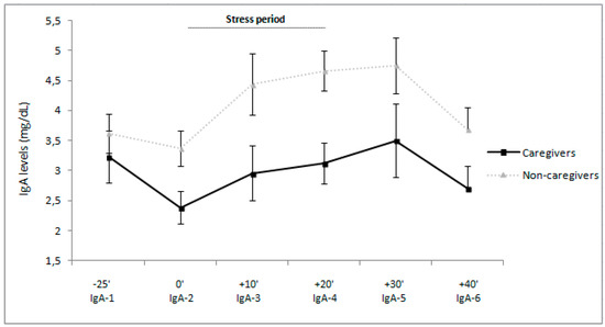 22]. In the present study, caregivers had lower levels of IgA and a weaker immune response than non-caregivers. As low levels of this immunoglobulin imply higher risk of respiratory and gastrointestinal infections [