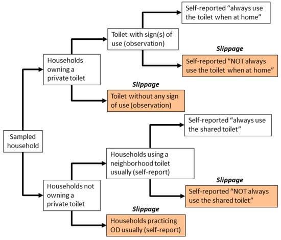 - Sinha, A.; Nagel, C.L.; Thomas, E.; Schmidt, W.P.; Torondel, B.; Boisson, S.; Clasen, T.F. Assessing latrine use in rural India: A cross-sectional study comparing reported use and passive latrine use monitors. Am. J. Trop. Med. Hyg. 2016, 95, 720–727. [Google Scholar] [CrossRef] [PubMed]