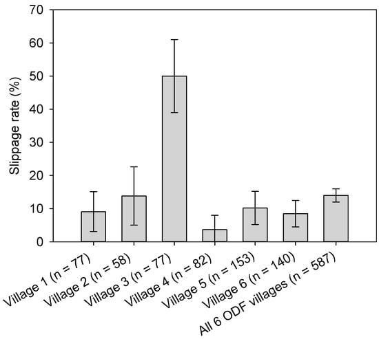 3.2. Factors Associated with Overall Slippage (i.e., Households both Owning and Not Owning a Private Latrine) and Slippage among Households Owning a Private Latrine