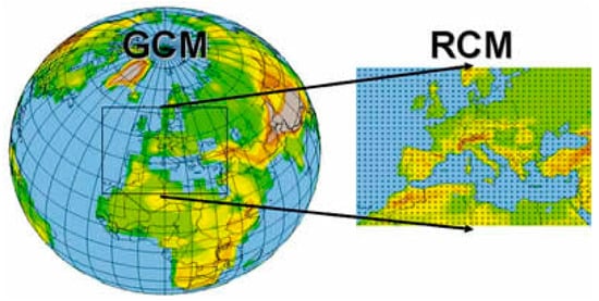 Figure 2. Downscaling from Global Climate Models (GCMs) to Regional Climate Models (RCMs) [].