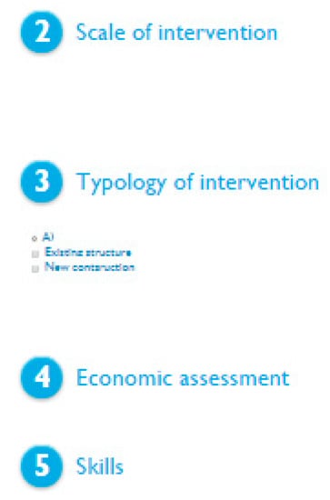 Its classification does not organize the mitigation actions by the immediacy of its effect (short, medium or long term effect), and in turn in its introduction a clear distinction is made between adaptation measures and mitigation measures. Adaptation measures are considered measures where the direct intervention of users is necessary—clothing, air conditioning []—and that do not have any positive effect on the outdoor thermal comfort, or even that have a negative one—heat released by air conditioning [,]. In turn, the mitigation strategies are considered well prepared and consistently applied actions. This is the reason why the mitigation measures presented include less actions than other catalogues.