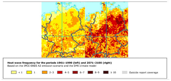 In addition to the significant direct impact of cities on global climate change due to the substantial CO2 emissions they release, there are also other indirect impacts due to unsustainable consumption, pollution and waste generation. Therefore, experts point out that a growing urban population is also likely to increase the direct influence of cities on the regional and global climate [,]. There are also some health implications here to be considered: apart from the many links between climate change and health [], extreme temperatures in many cities are known to be associated with many detrimental health effects [] and often with higher mortality [].