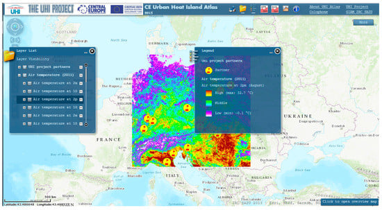 - Land surface temperature: Satellite imagery also allows to map land surface temperature worldwide [] (Figure 4). Land surface temperature is often used to characterize UHI [,].