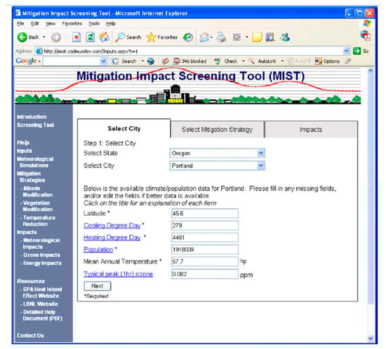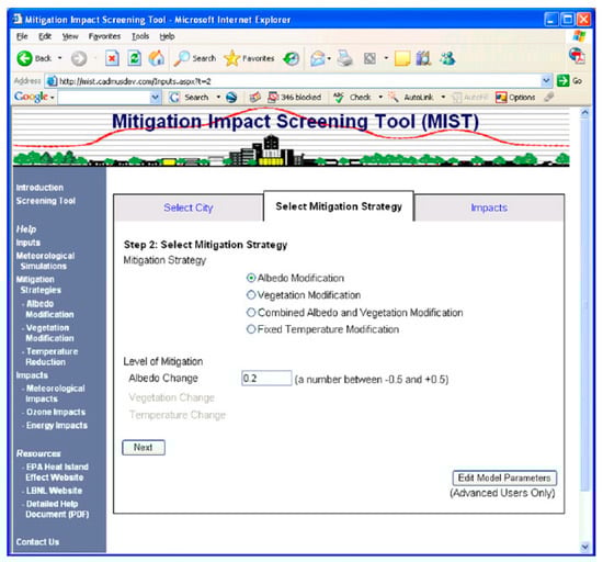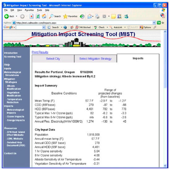 - Environmental Protection Agency. 2016. Available online: http://www.coolrooftoolkit.org/knowledgebase/epa-mitigation-impact-screening-tool-mist/ (accessed on 5 October 2016).