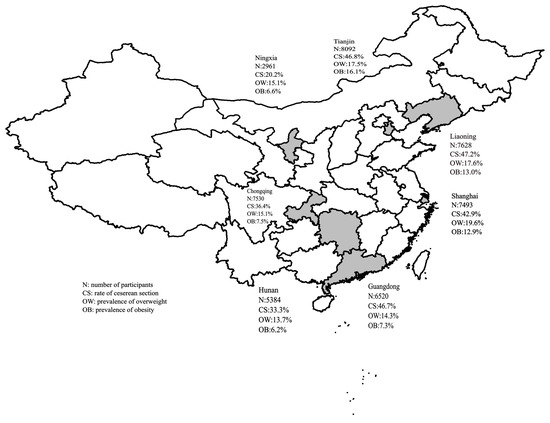 Liang, J.; Zhang, Z.; Yang, W.; Dai, M.; Lin, L.; Chen, Y.; Ma, J.; Jing, J. Association between Cesarean Section and Weight Status in Chinese Children and Adolescents: A National Survey. Int. J. Environ. Res. Public Health 2017, 14, 1609. https://doi.org/10.3390/ijerph14121609