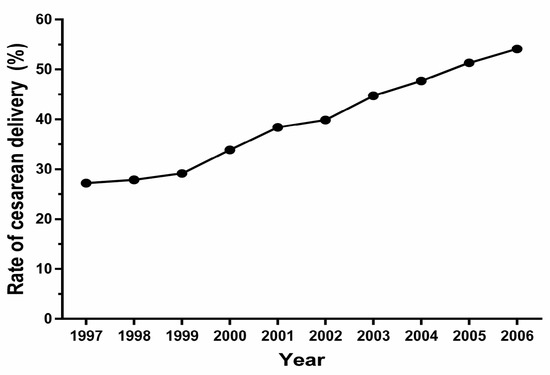 - Betran, A.P.; Ye, J.; Moller, A.B.; Zhang, J.; Gulmezoglu, A.M.; Torloni, M.R. The increasing trend in caesarean section rates: Global, regional and national estimates: 1990–2014. PLoS ONE 2016, 11, e0148343. [Google Scholar] [CrossRef] [PubMed]