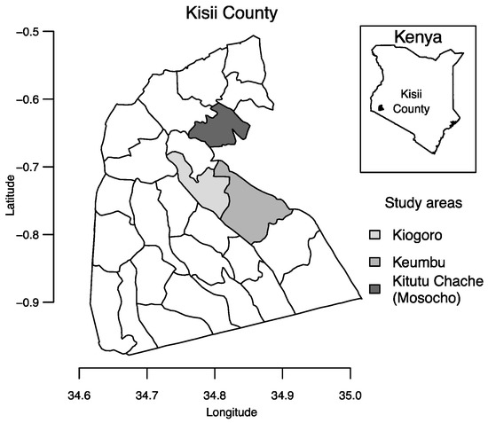 Kisii Central is an administrative division of Kisii County, Kenya, which is located southeast of Lake Victoria with a population of 1.1 million people [17] (Figure 1). Average annual rainfall in Kisii is estimated at 1500 mm [18].