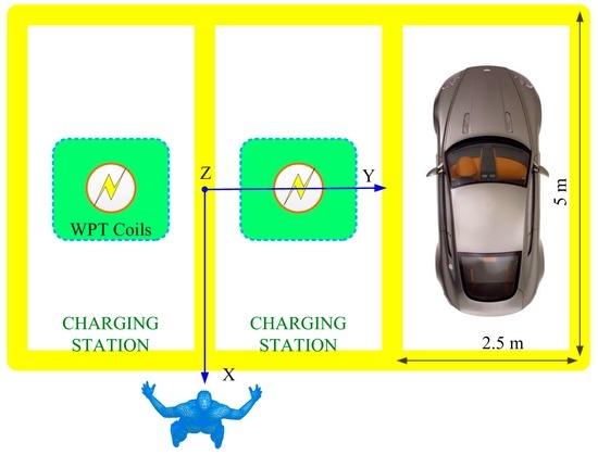 - Christ, A.; Douglas, M.G.; Roman, J.M.; Cooper, E.B.; Sample, A.P.; Waters, B.H.; Smith, J.R.; Kuster, N. Evaluation of wireless resonant power transfer systems with human electromagnetic exposure Limits. IEEE Trans. Electromagn. C 2013, 55, 265–274. [Google Scholar] [CrossRef]