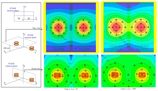 - Kim, H.; Cho, J.; Ahn, S.; Kim, J. Suppression of leakage magnetic field from a wireless power transfer system using ferrimagnetic material and metallic shielding. In Proceedings of the 2012 IEEE International Symposium on Electromagnetic Compatibility (EMC), Pittsburgh, PA, USA, 6–10 August 2012.