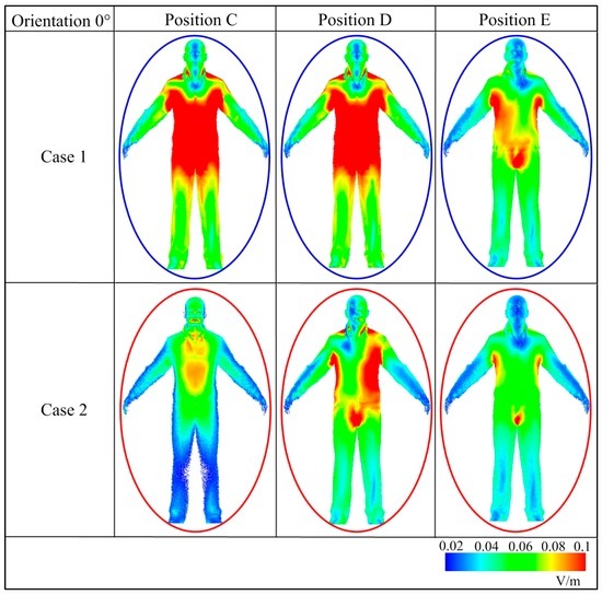 3.2. Induced Electric Field in the Human Body