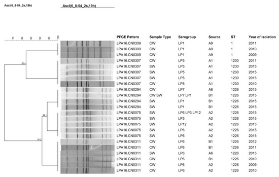 3.4. PFGE Analysis of Legionella Isolates